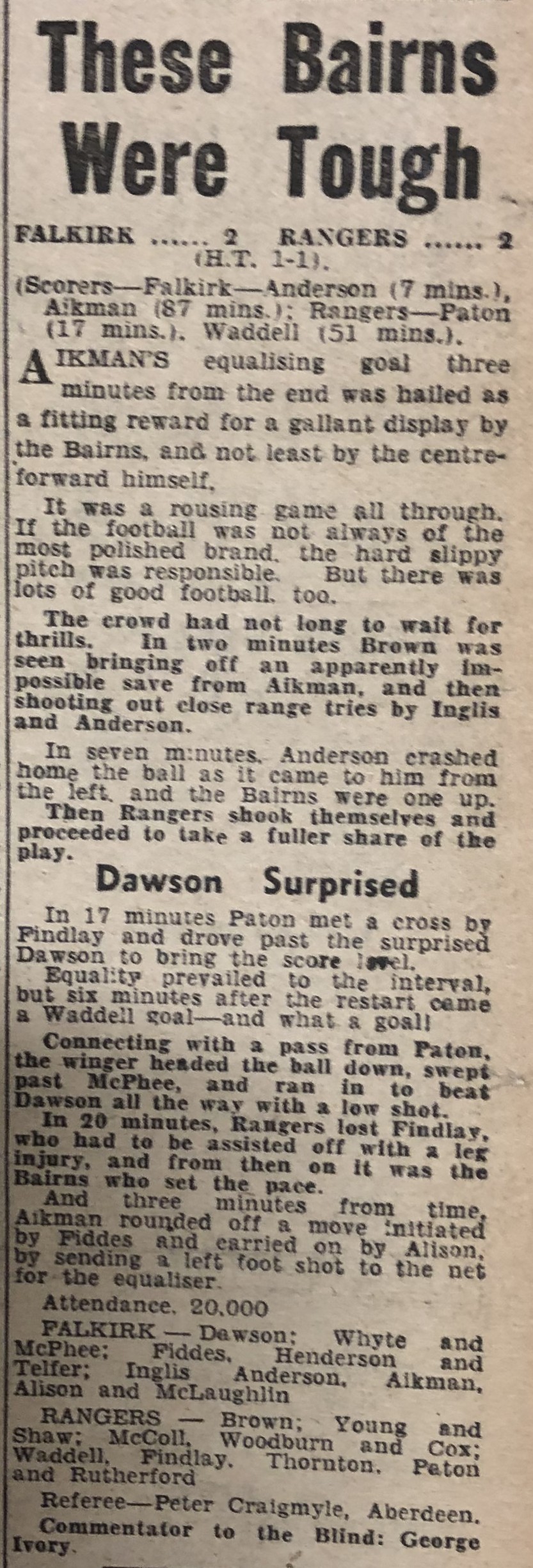 Referee: P Craigmyle (Aberdeen)