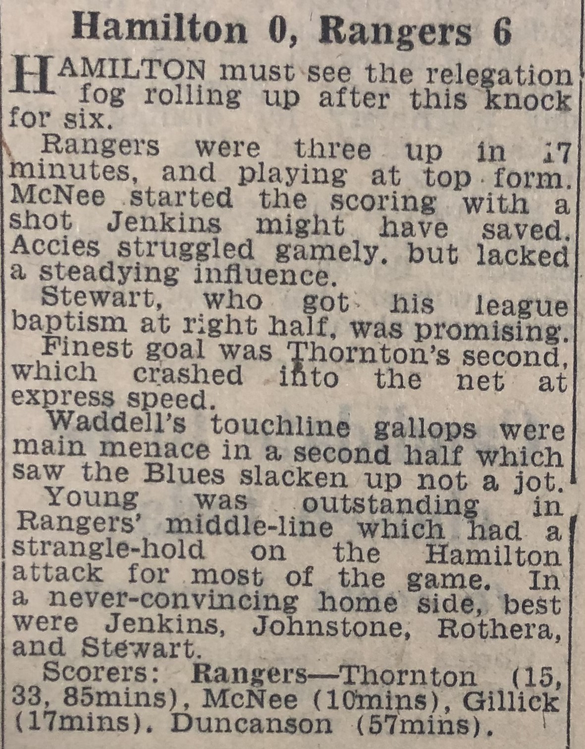 Referee: M Dale (Glasgow)