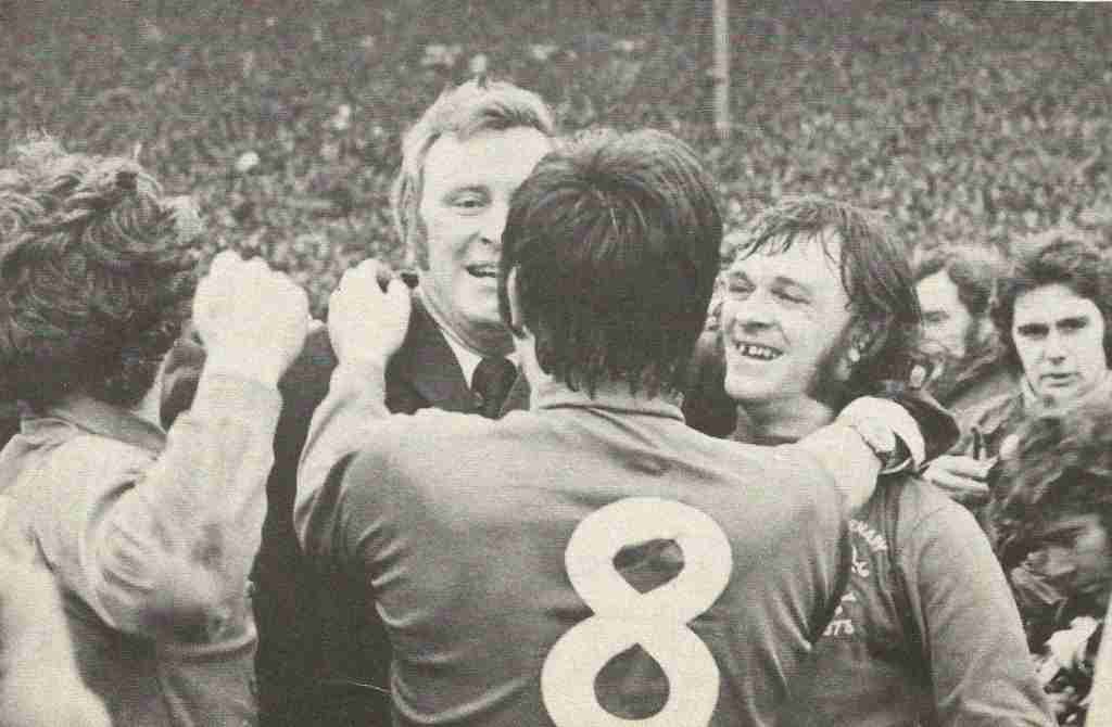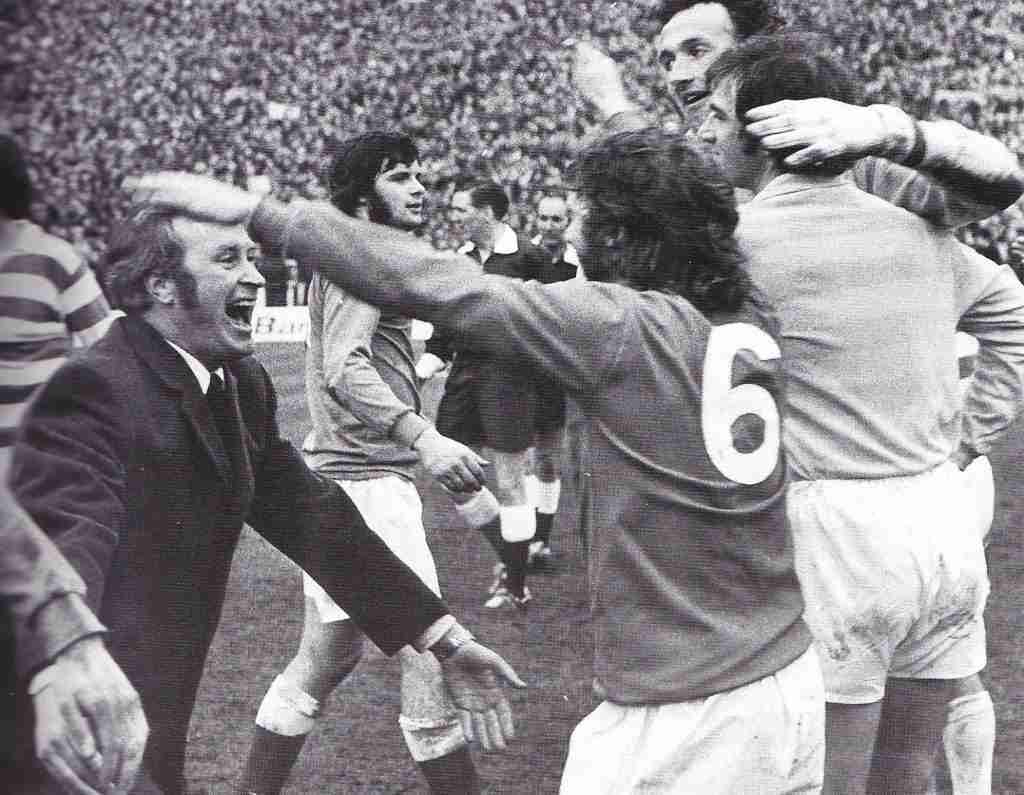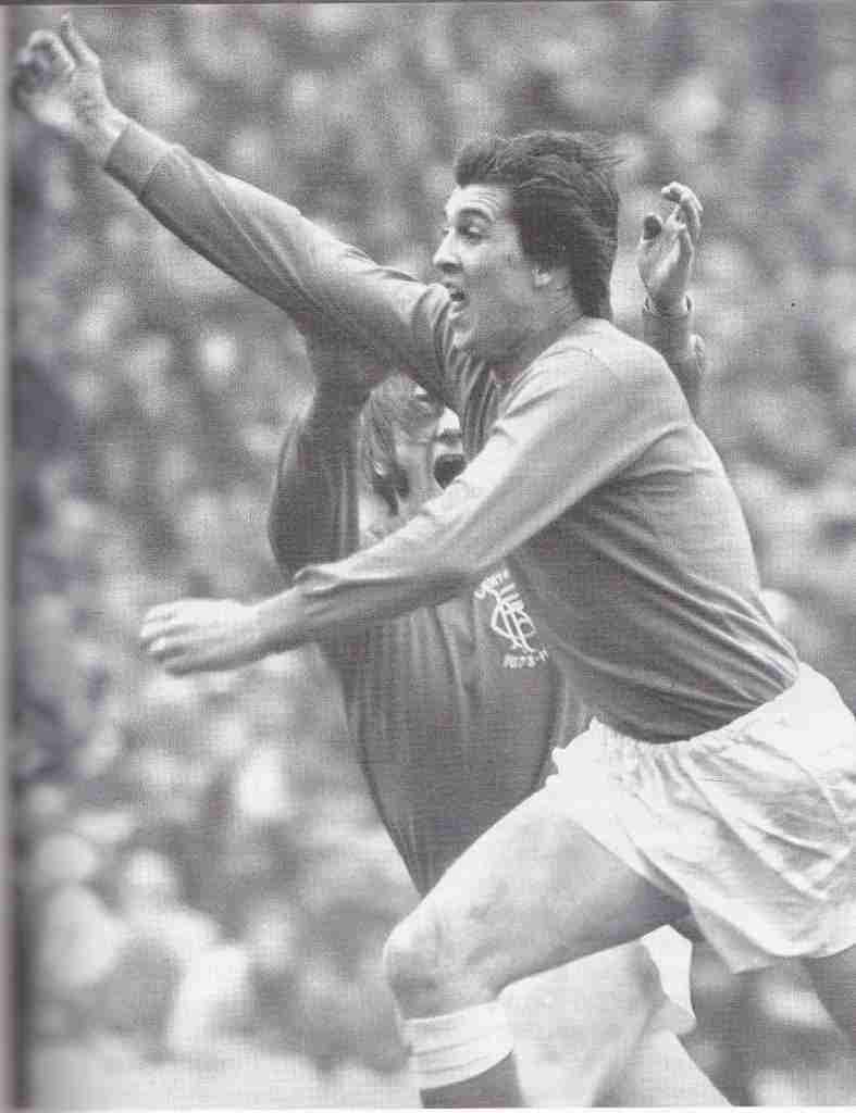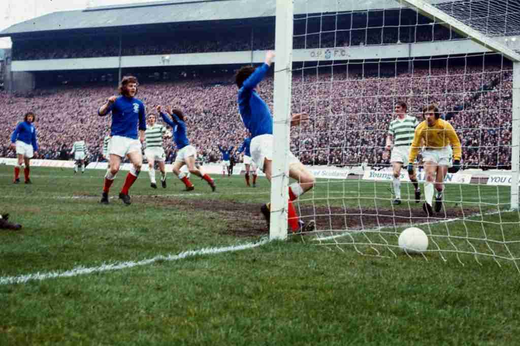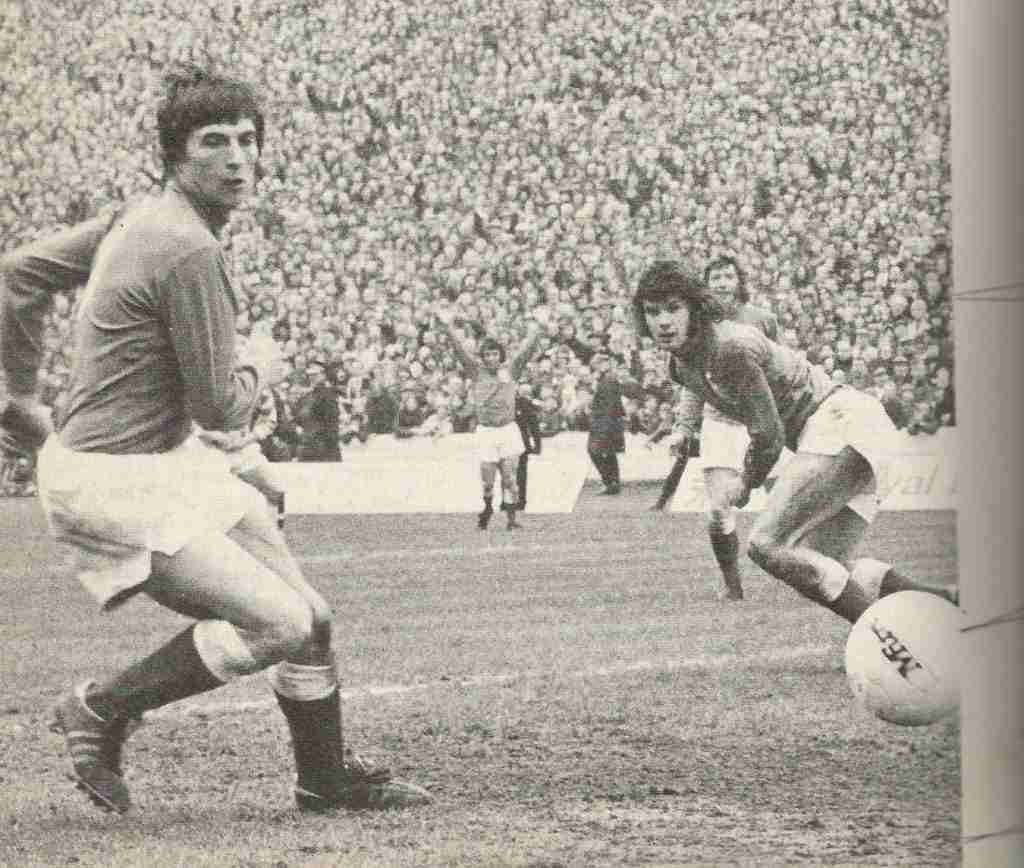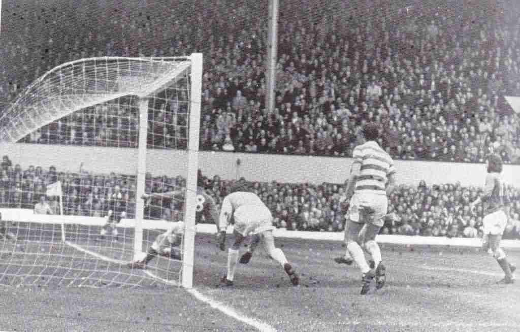 Tom Forsyth Rangers football player May 1973 Scores goal against Celtic Scottish Cup Final Hampden Park Glasgow Celtic goalkeeper Ally Hunter and George Connelly look on