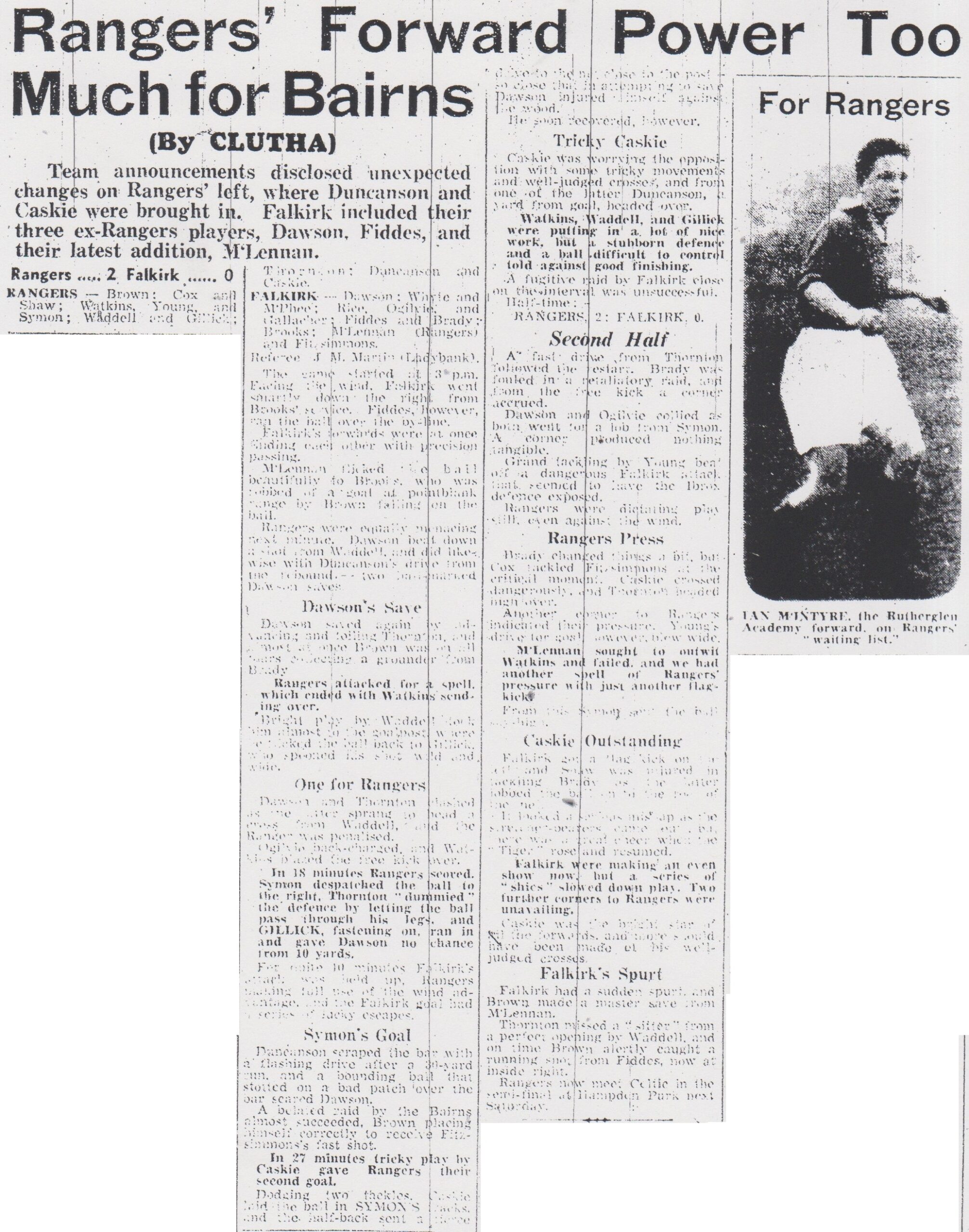 Referee: J.M. Martin (Ladybank)