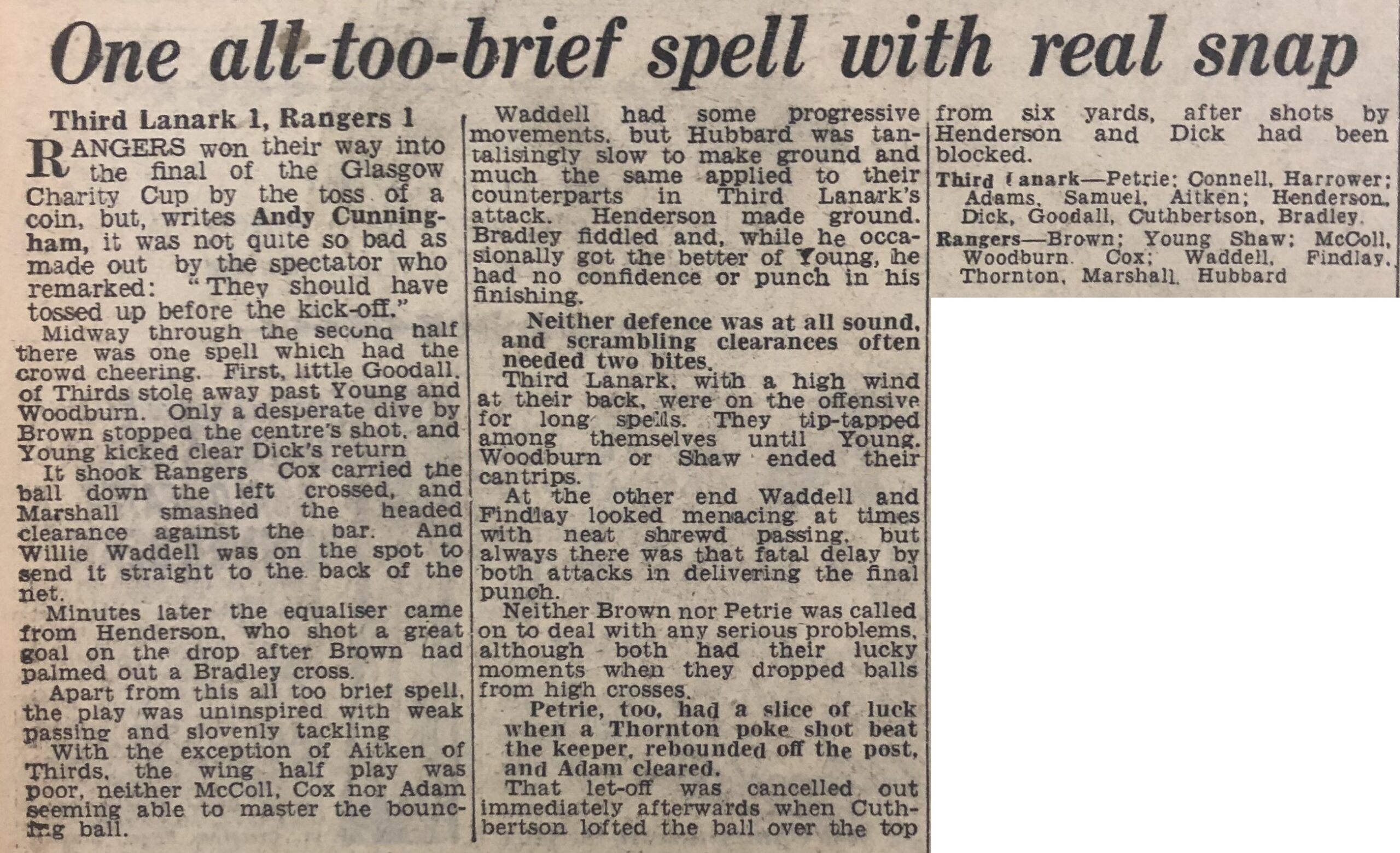 Rangers won on the toss of a coin